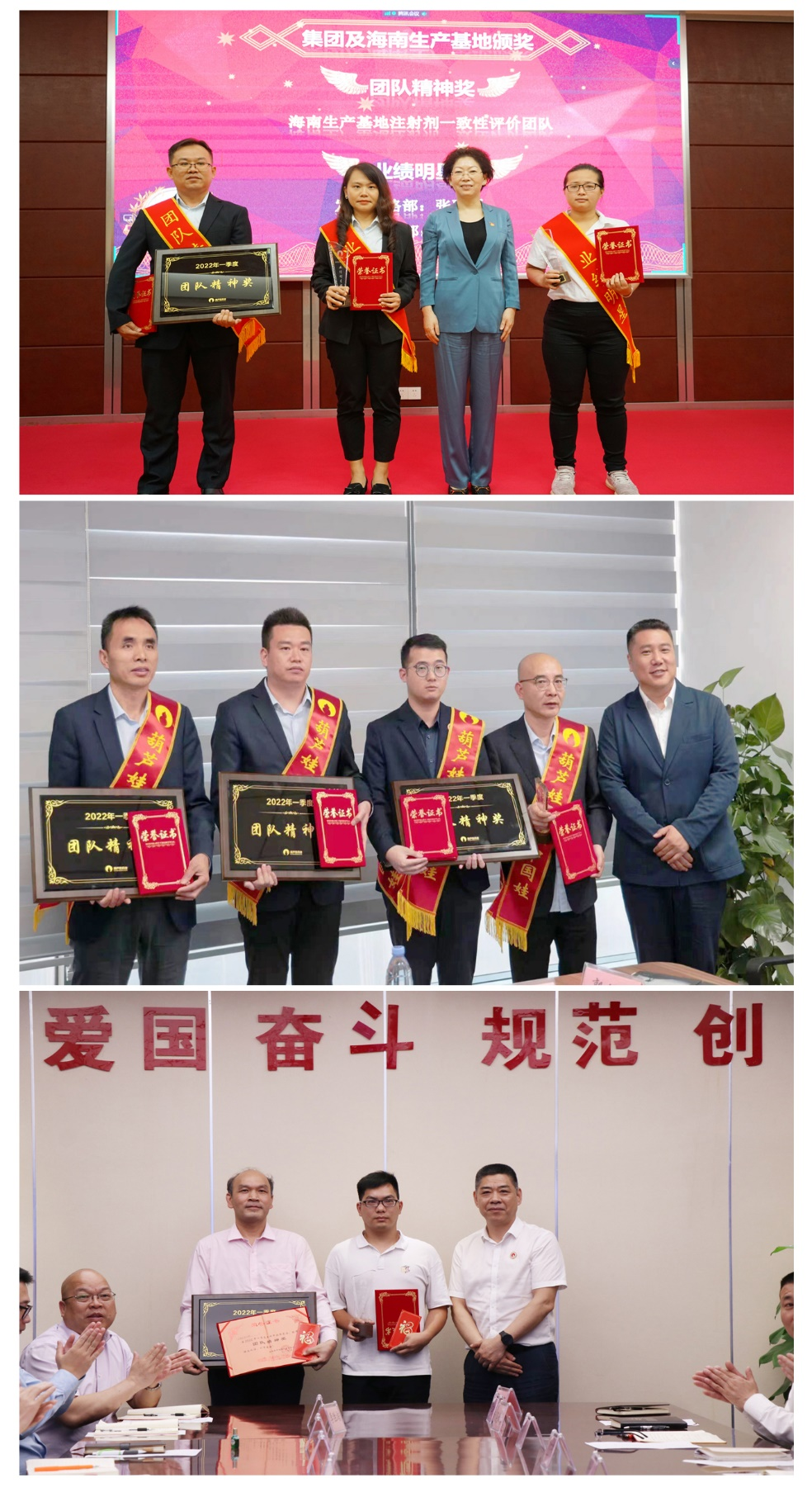 为了表彰在2022年一季度“深化变革,赢得开门红”工作中“超额完成计划、超出本职工作或超越组织预期”的先进集体和优秀个人,会议期间还举行了AG庄闲药业集团2022年一季度“开门红”表彰颁奖仪式。营销中心葫芦世家事业部湖南区域主管黄子杰等12人荣获业绩明星奖,葫芦世家事业部等5个集体荣获团队精神奖。